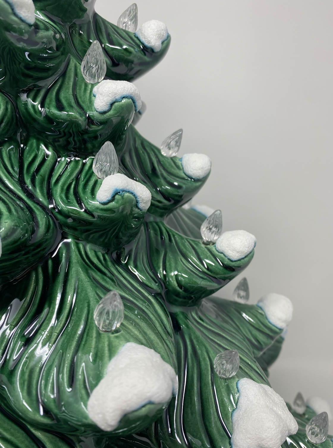 Green Christmas Tree with White Lights and Classic Base